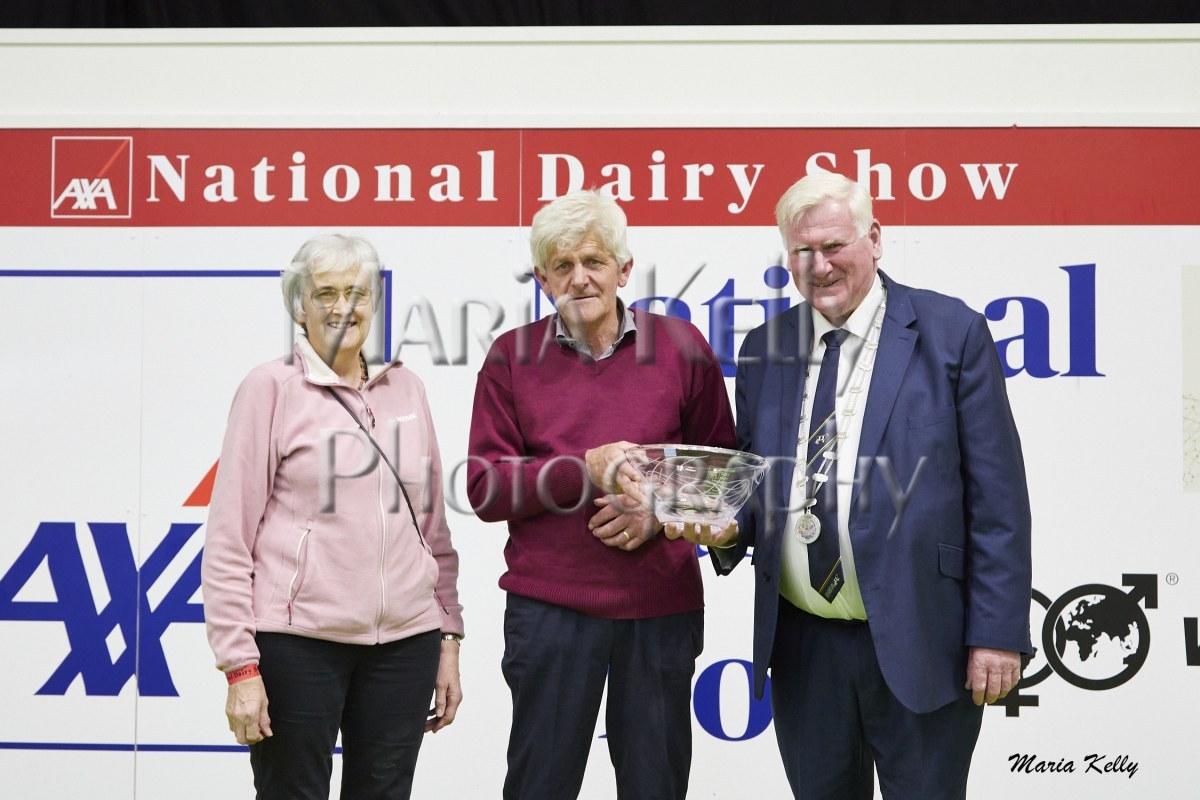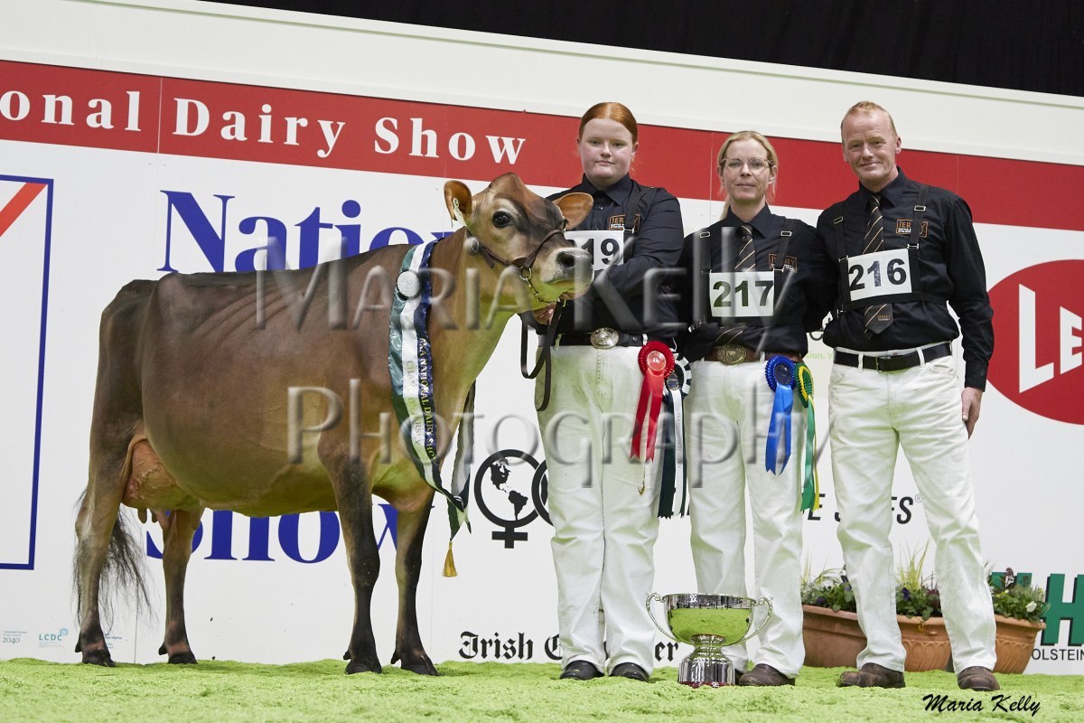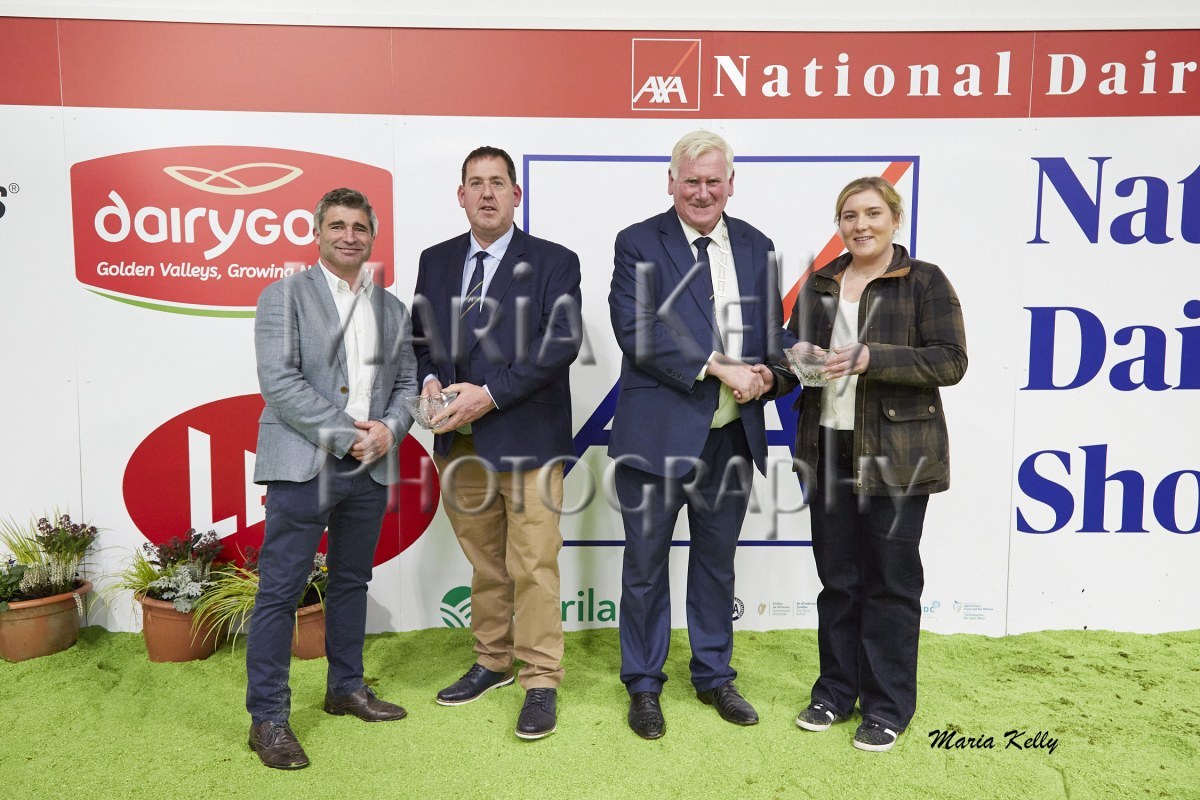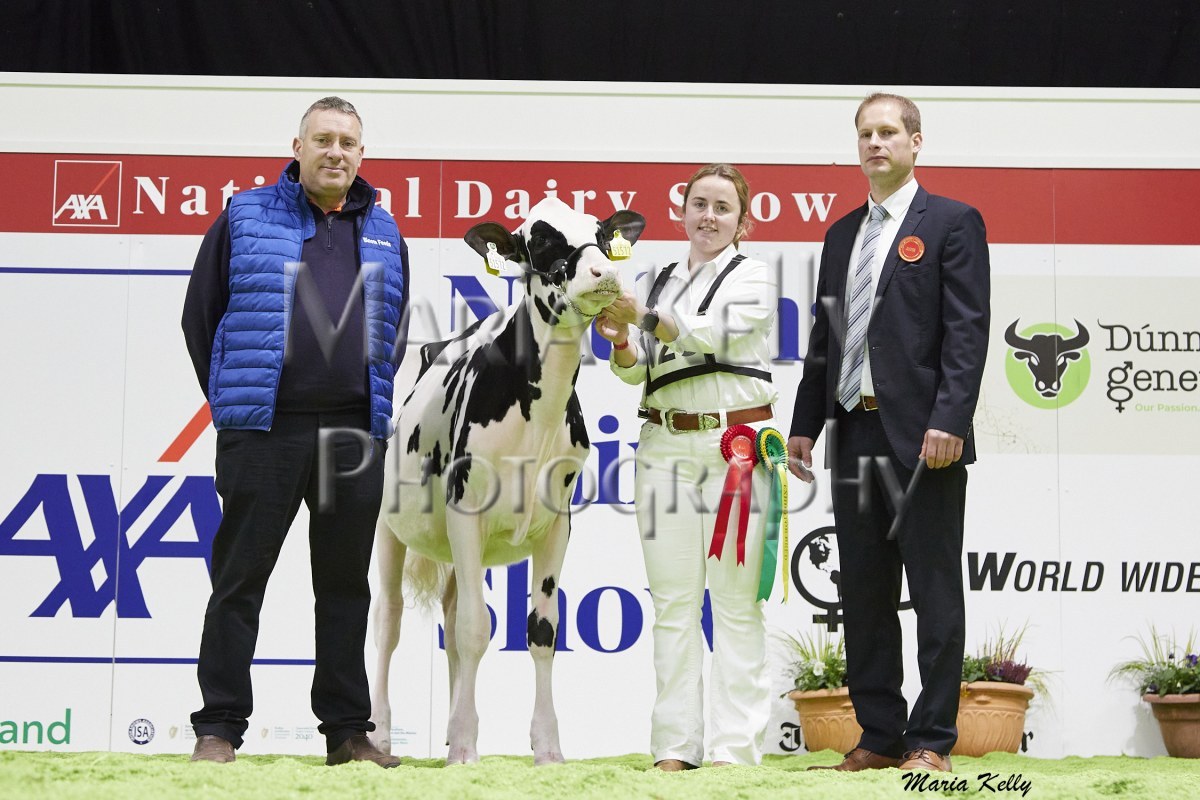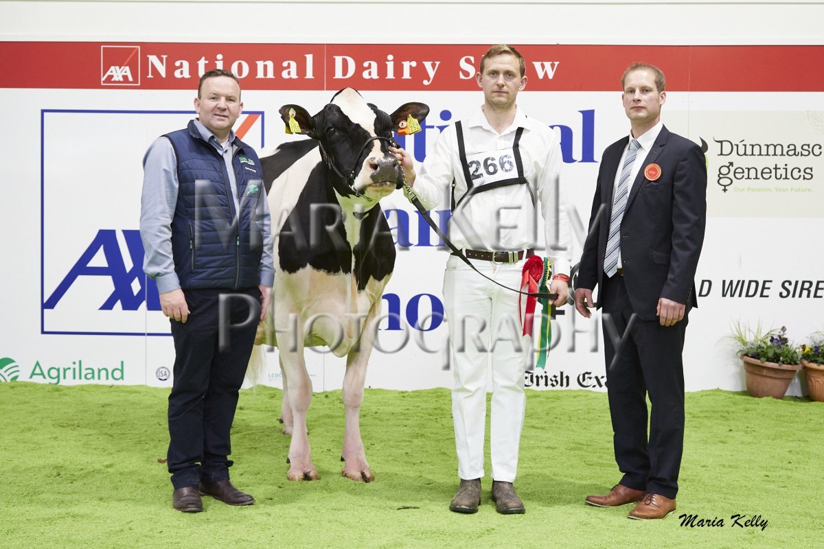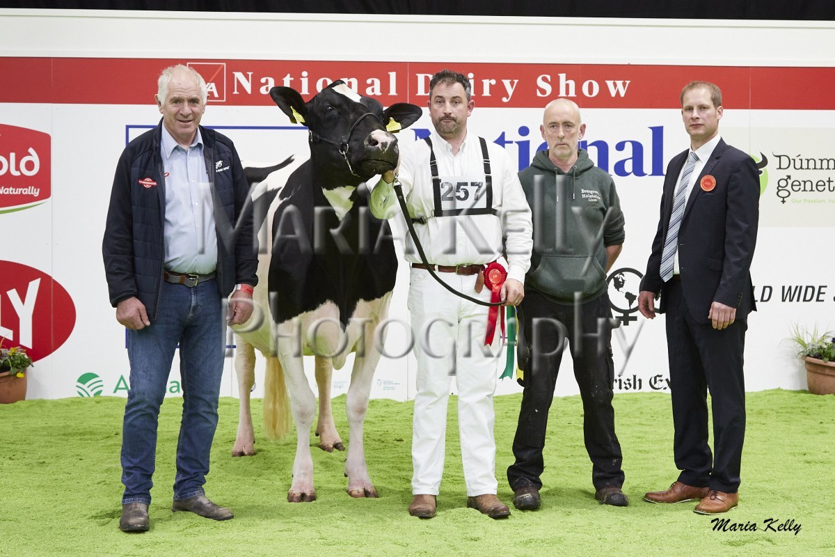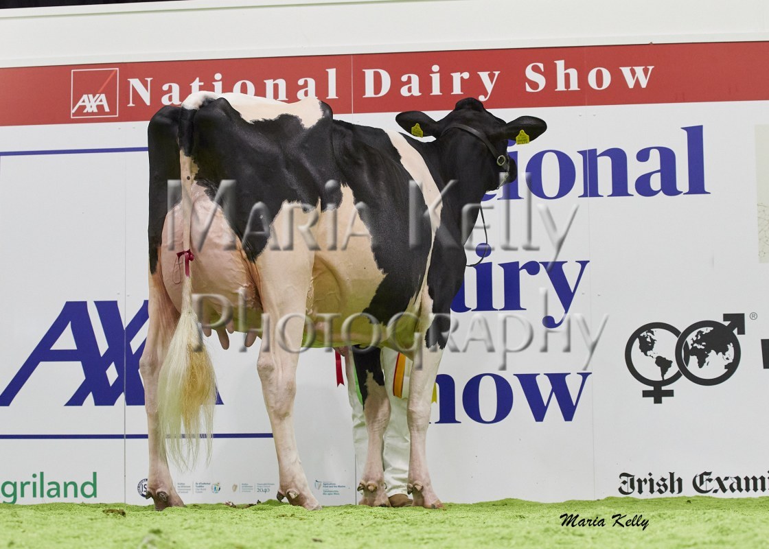 11/10/25 AXA National Dairy Show 2025, Irish Examiner Supreme Champion Hallow Octain Twizzle exhibited by Hallow Holsteins, Gorey, Co. Wexford, Philip & Linda Jones. Photo: Maria Kelly.