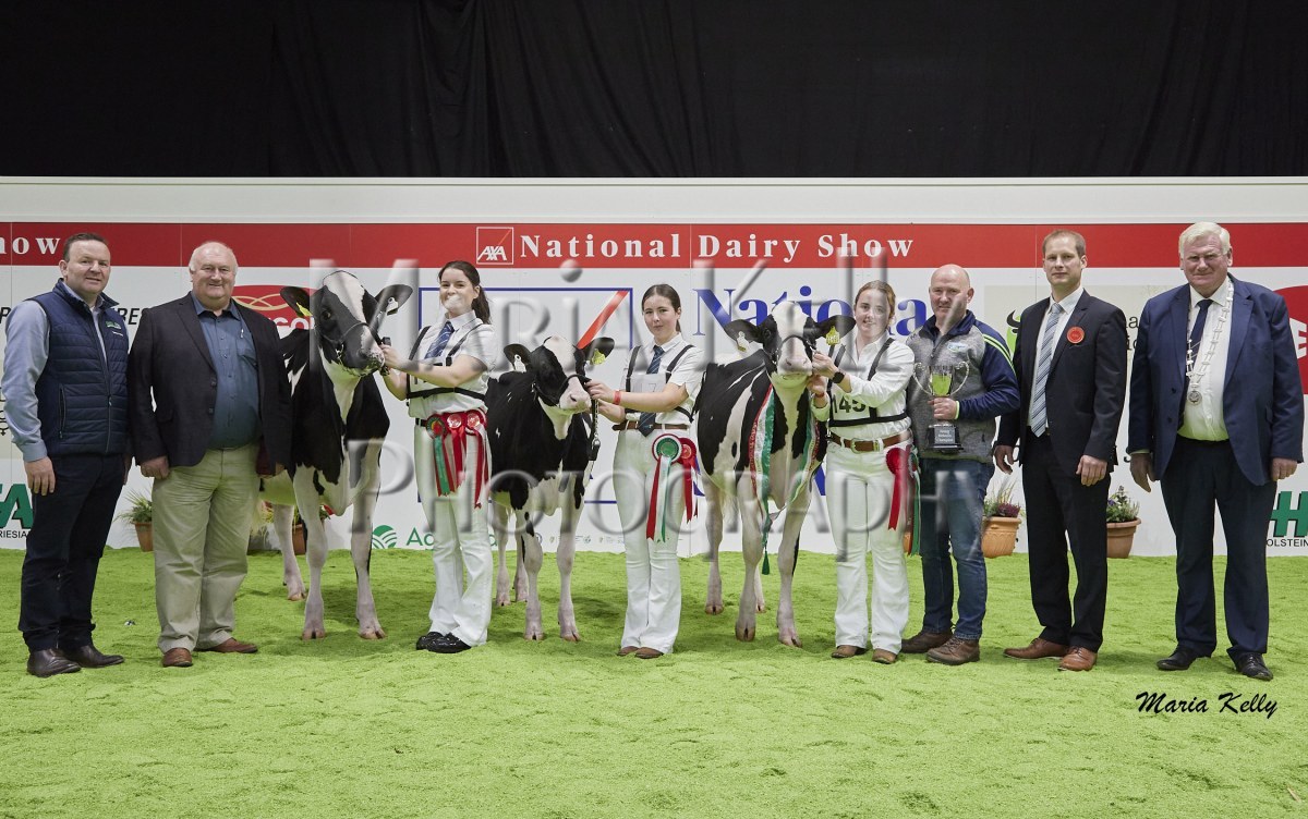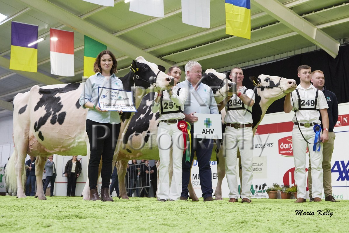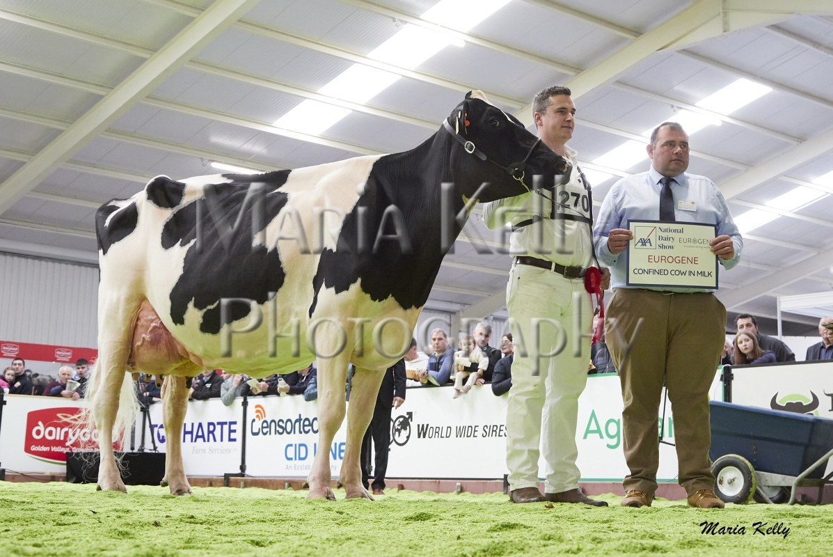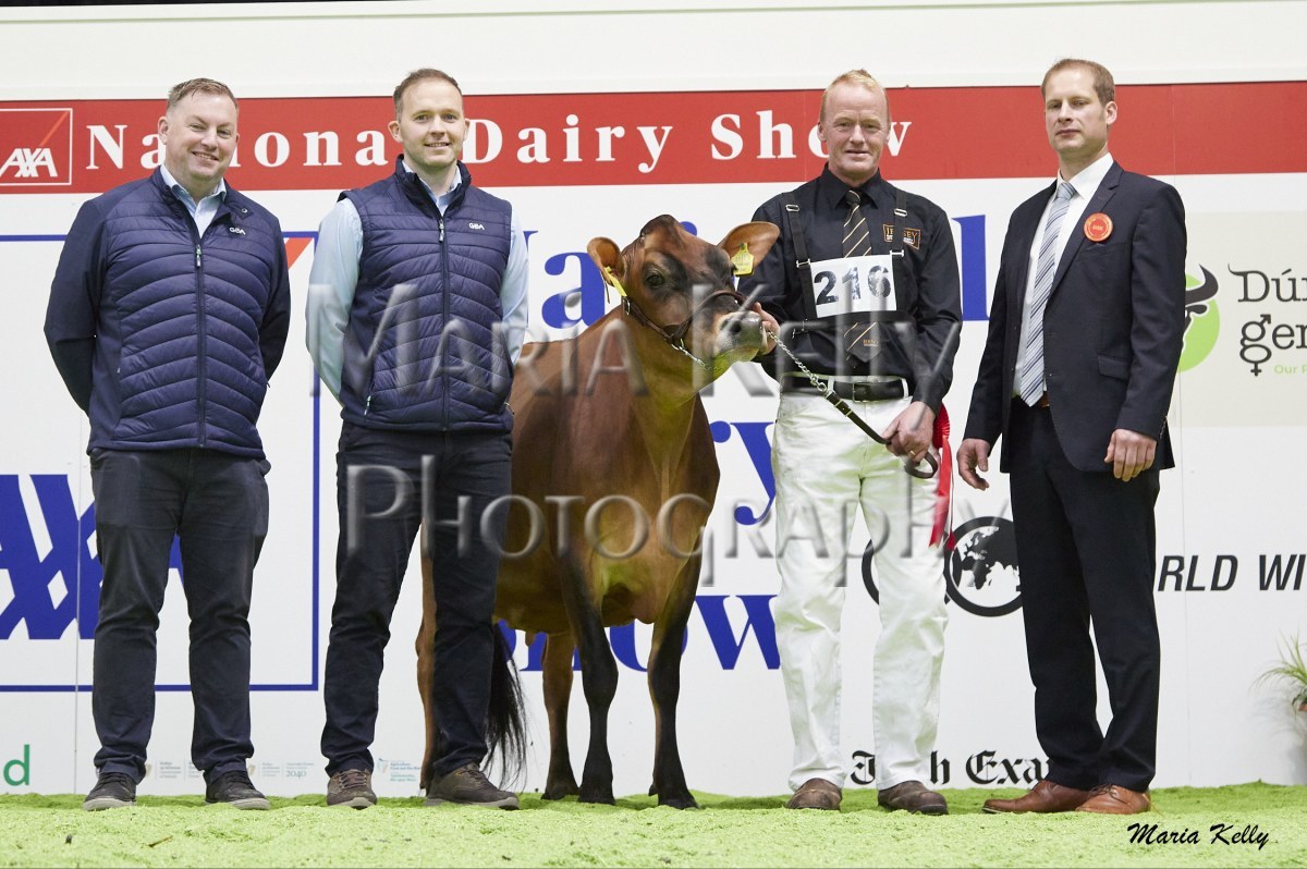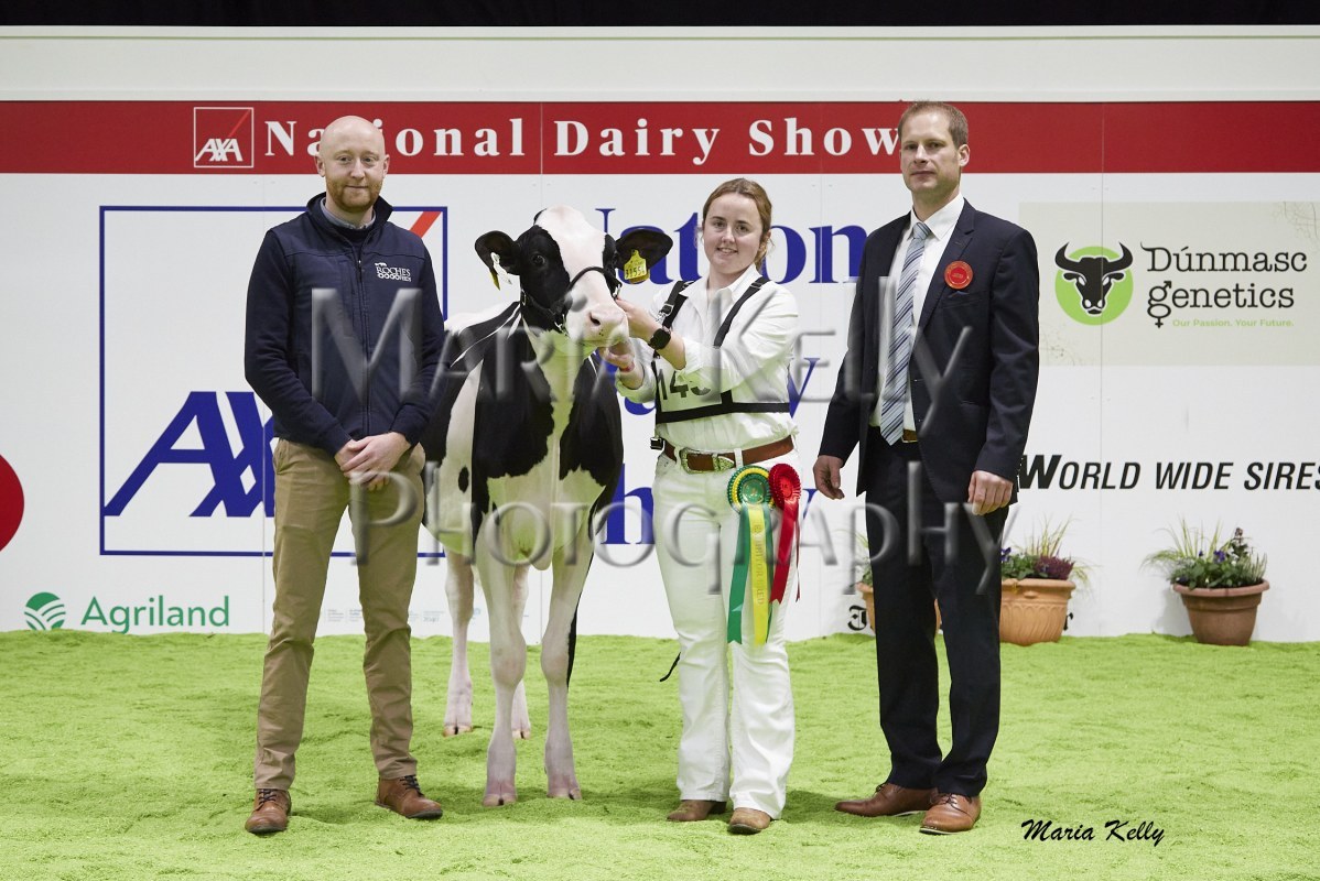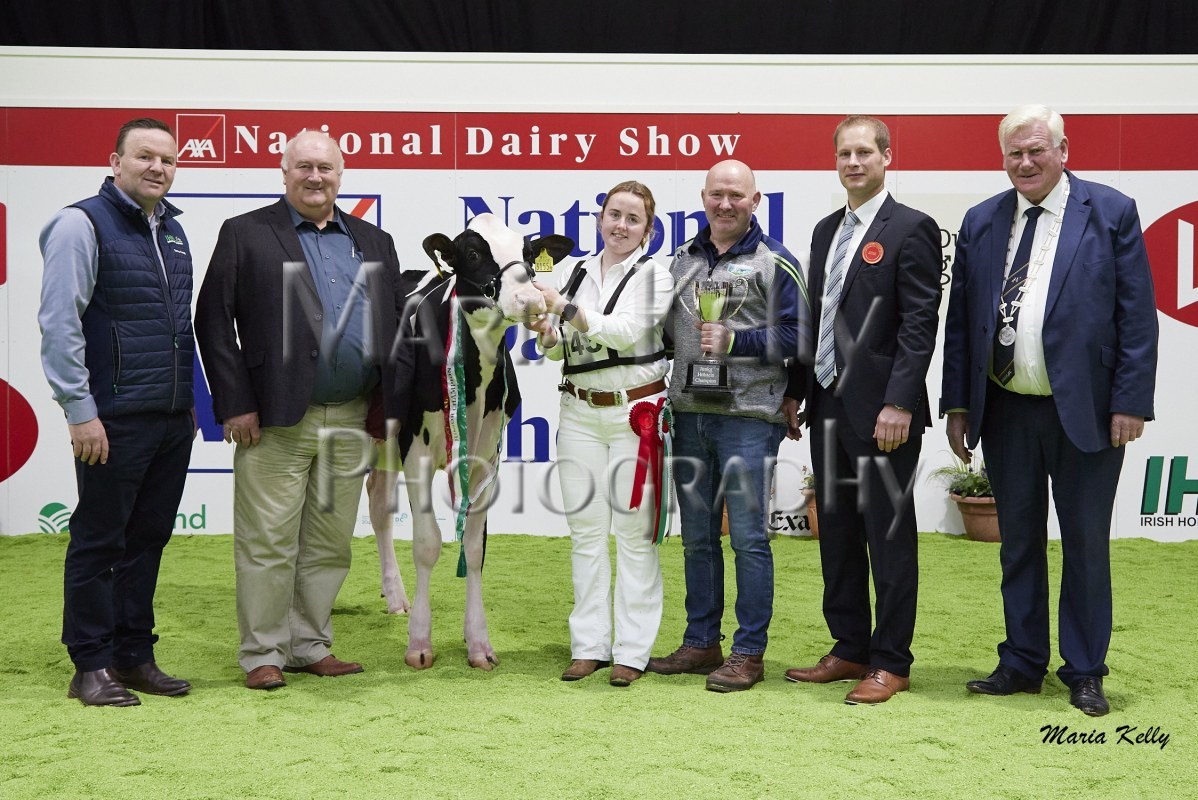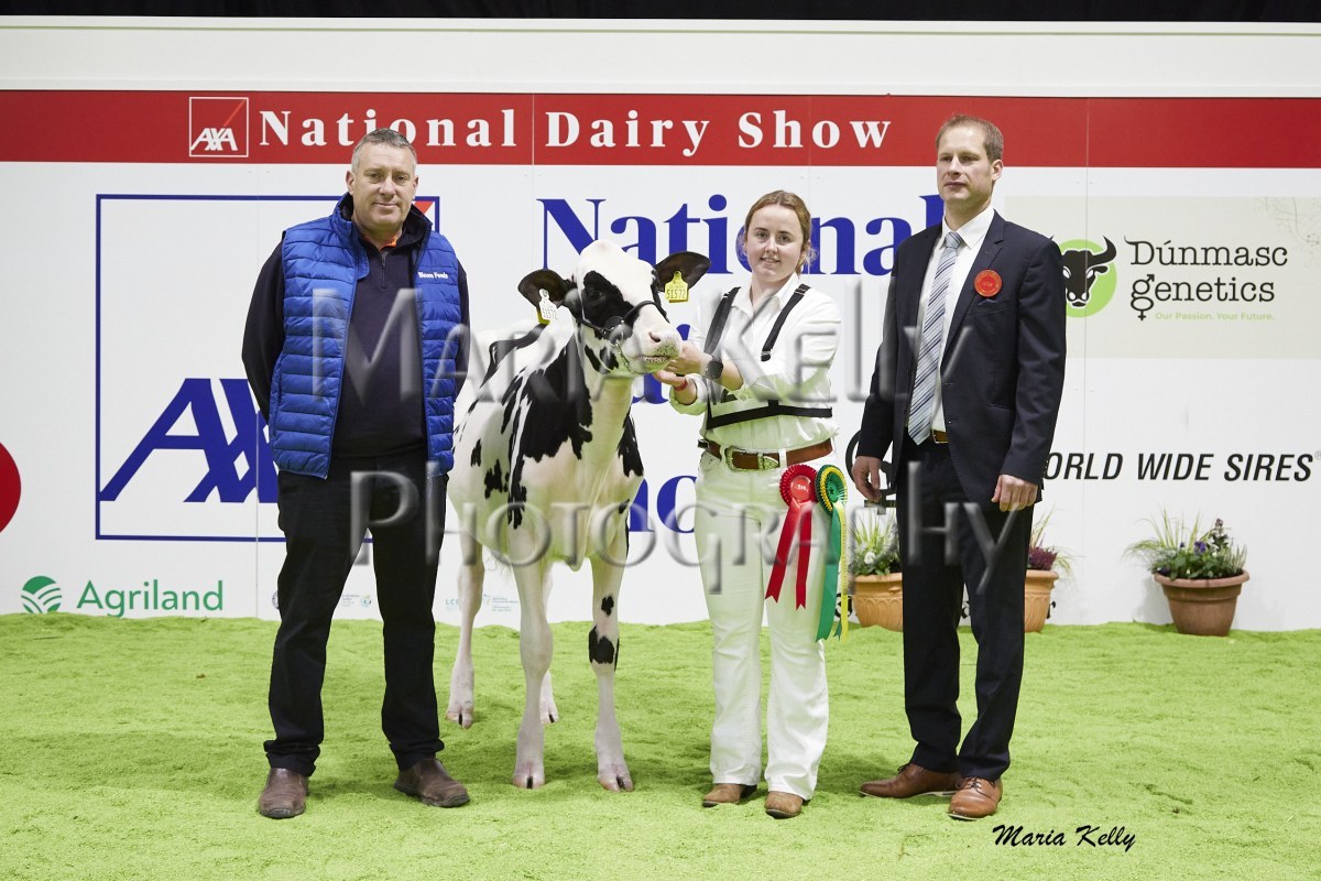 11/10/25 AXA National Dairy Show 2025, Irish Examiner Supreme Champion Hallow Octain Twizzle exhibited by Hallow Holsteins, Gorey, Co. Wexford, Philip & Linda Jones. Photo: Maria Kelly.