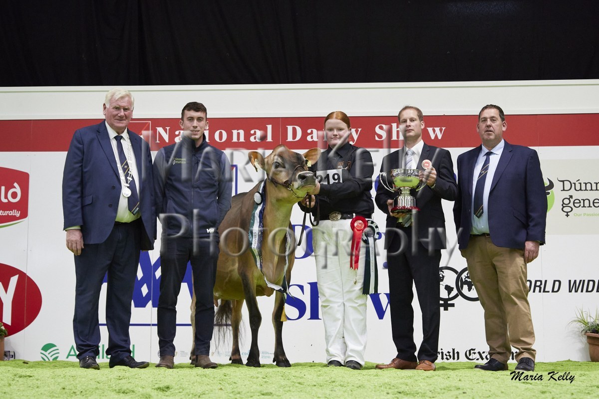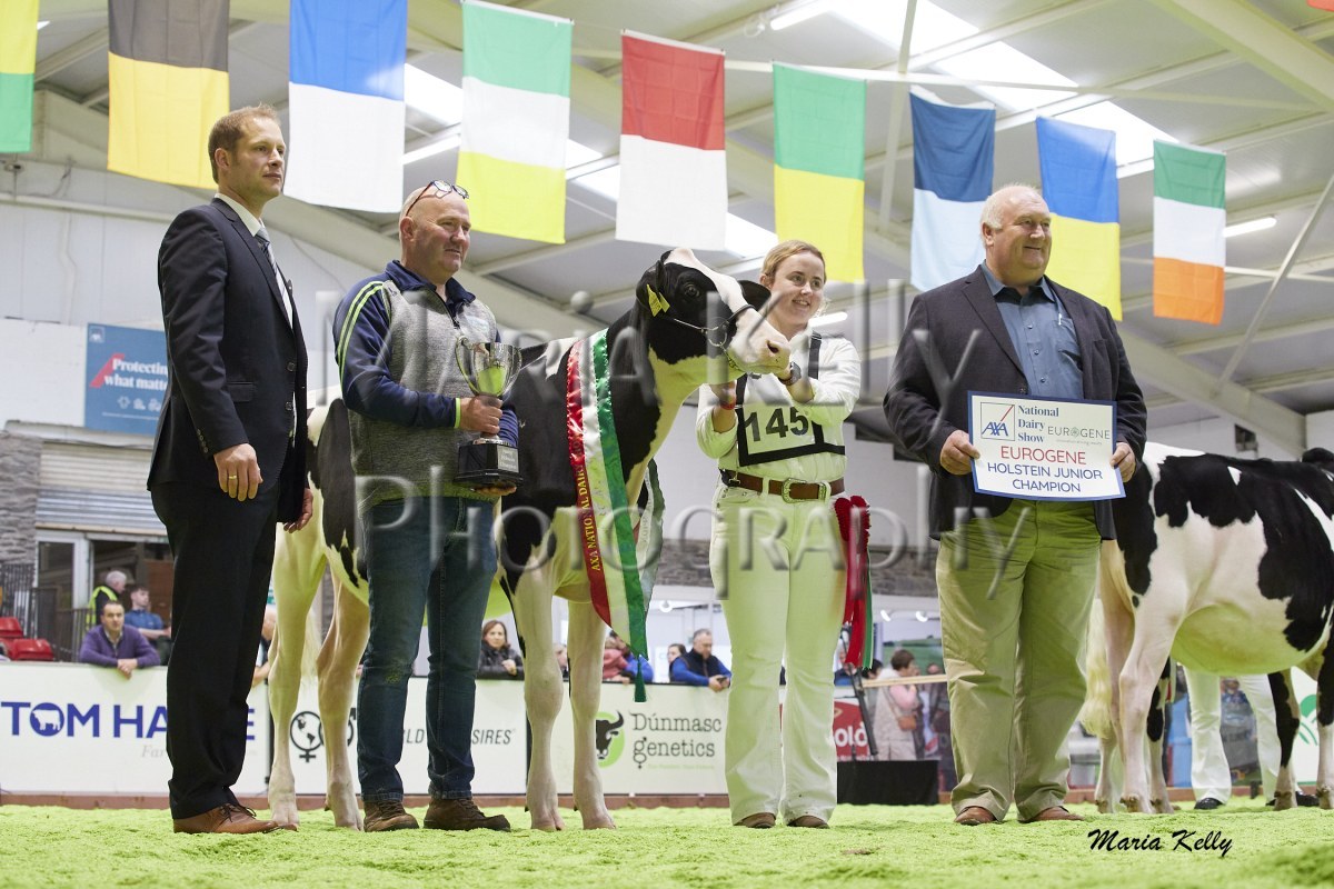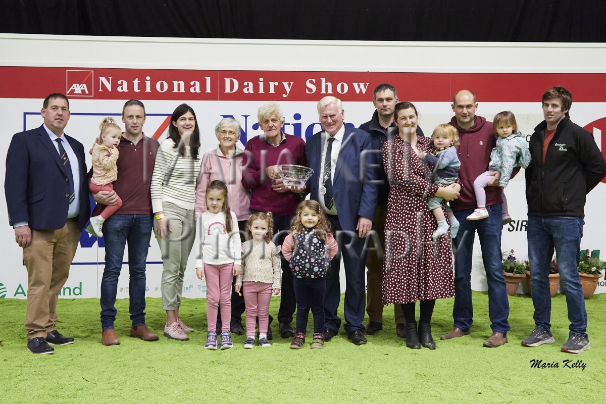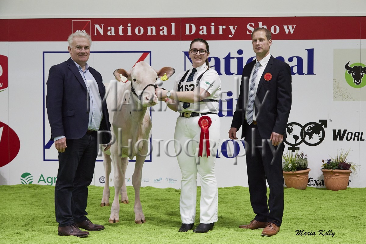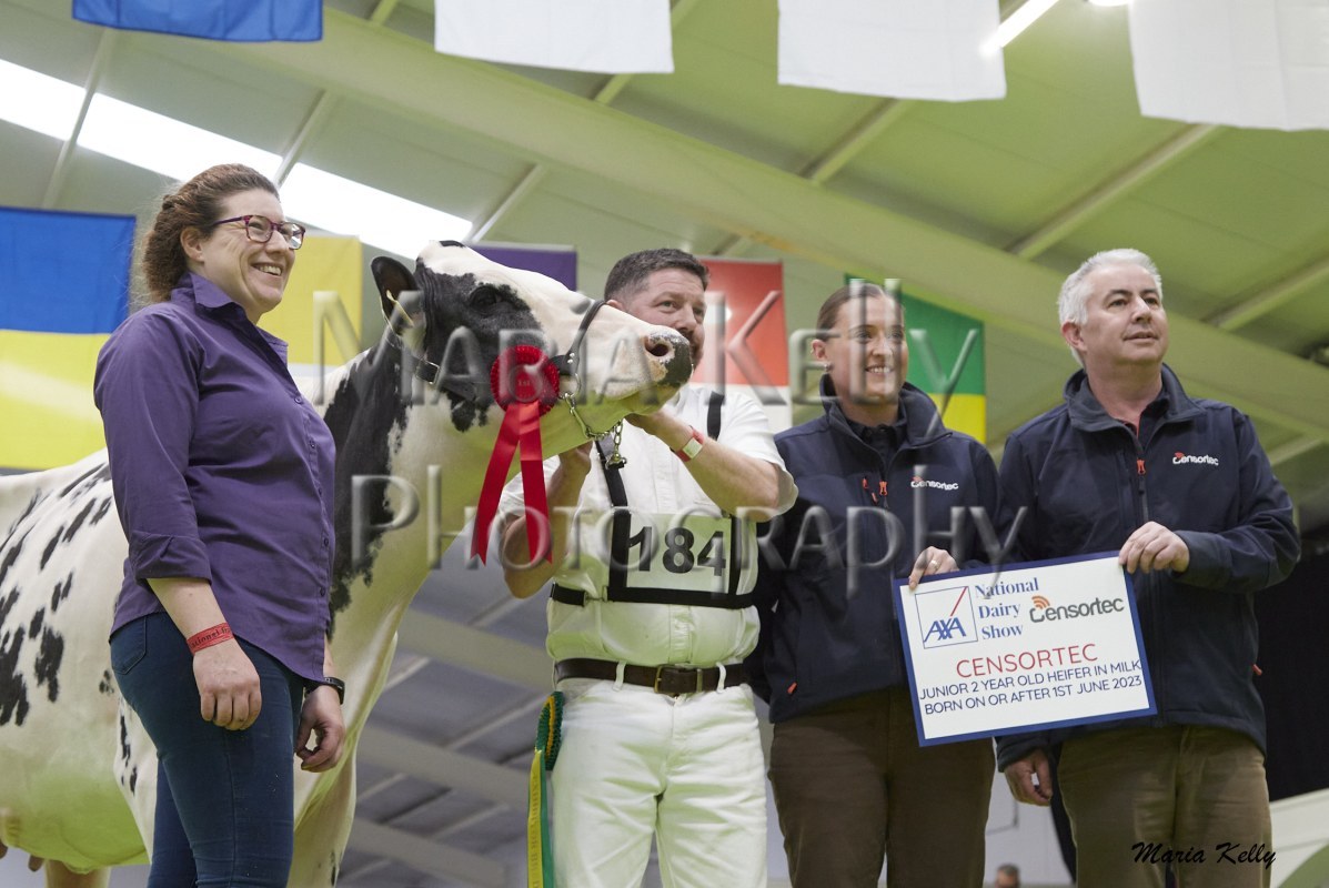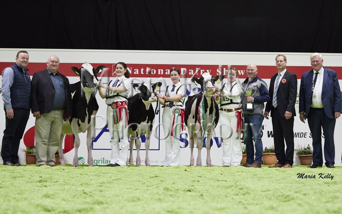 11/10/25 AXA National Dairy Show 2025, Irish Examiner Supreme Champion Hallow Octain Twizzle exhibited by Hallow Holsteins, Gorey, Co. Wexford, Philip & Linda Jones. Photo: Maria Kelly.