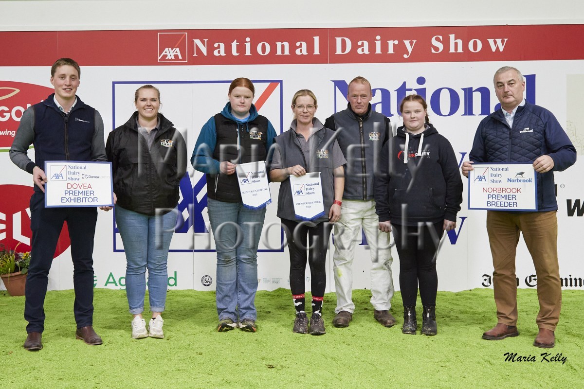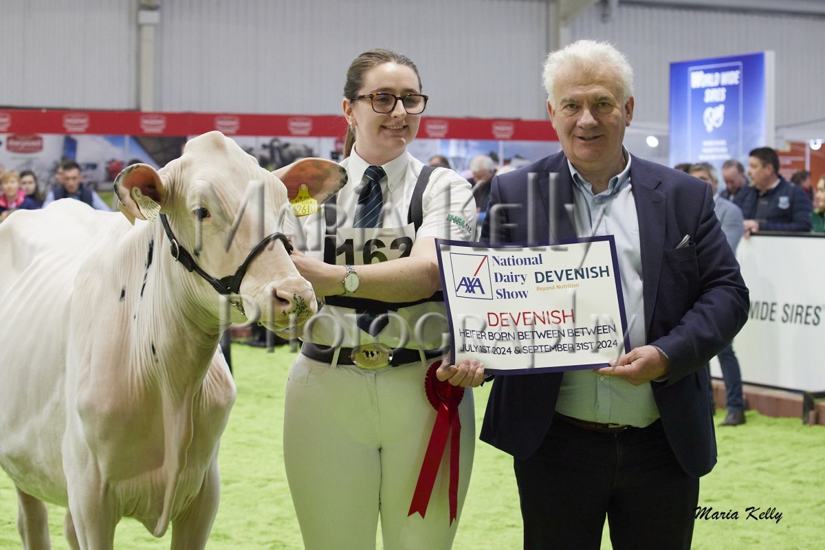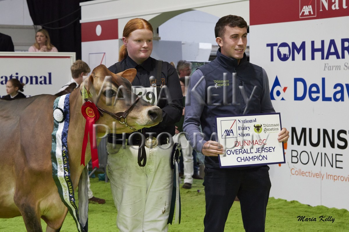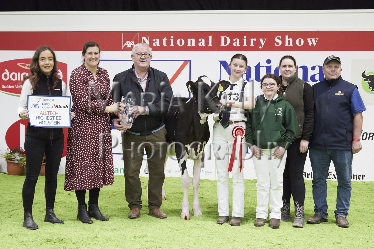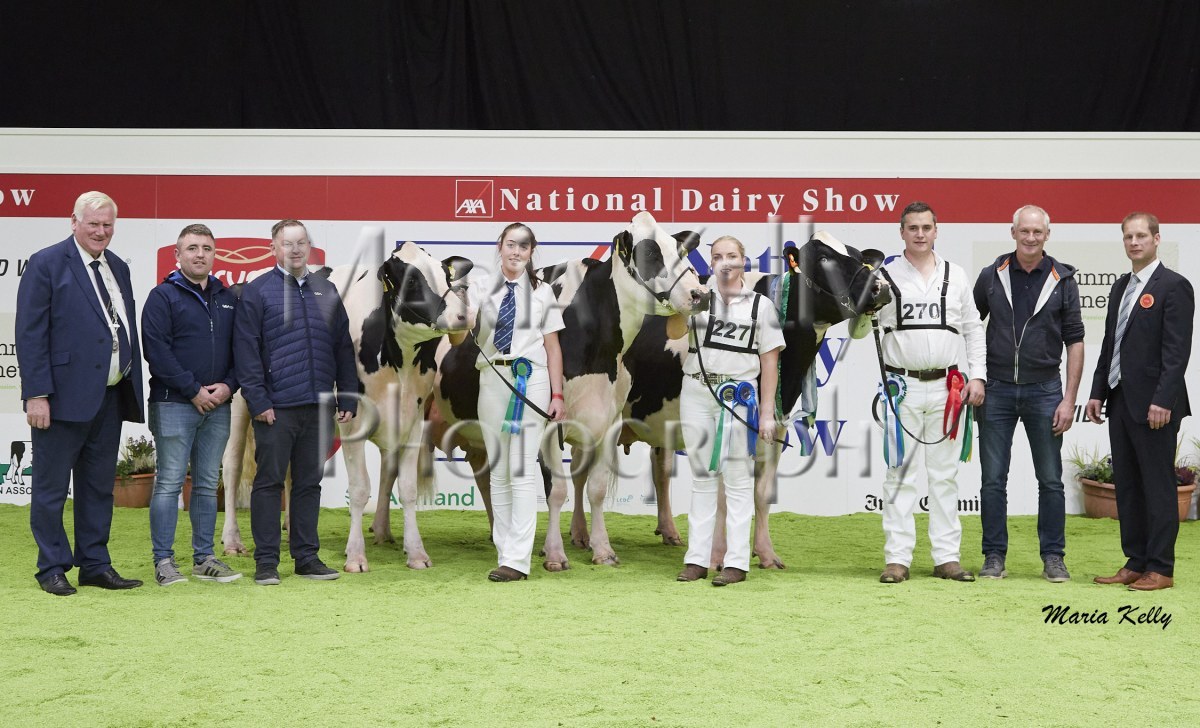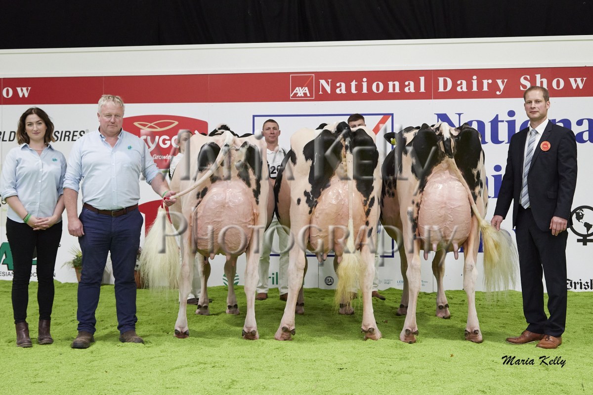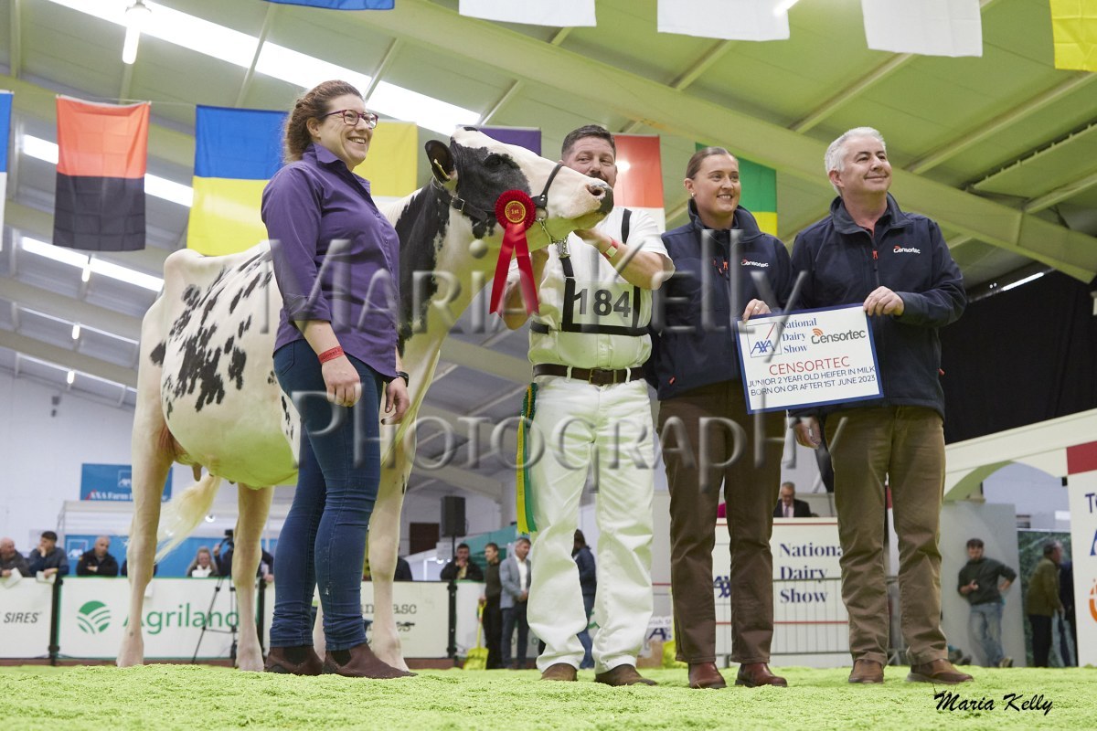 11/10/25 AXA National Dairy Show 2025, Irish Examiner Supreme Champion Hallow Octain Twizzle exhibited by Hallow Holsteins, Gorey, Co. Wexford, Philip & Linda Jones. Photo: Maria Kelly.