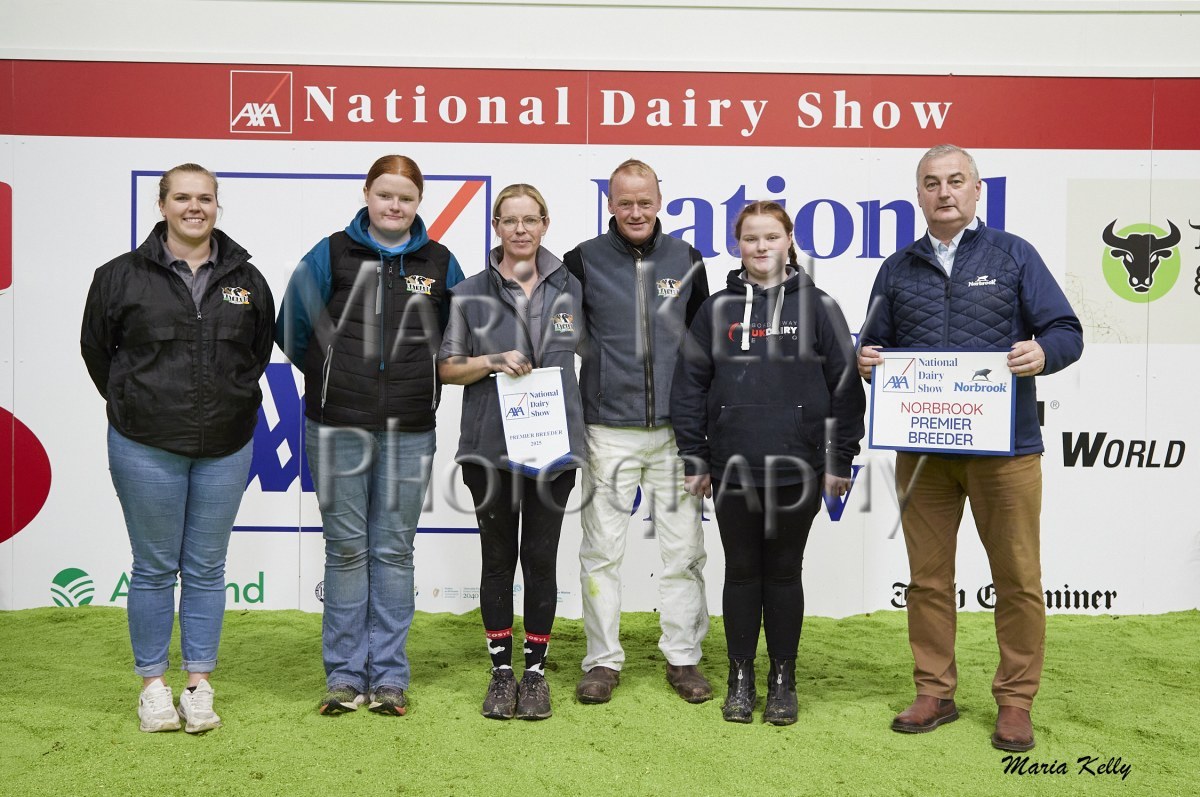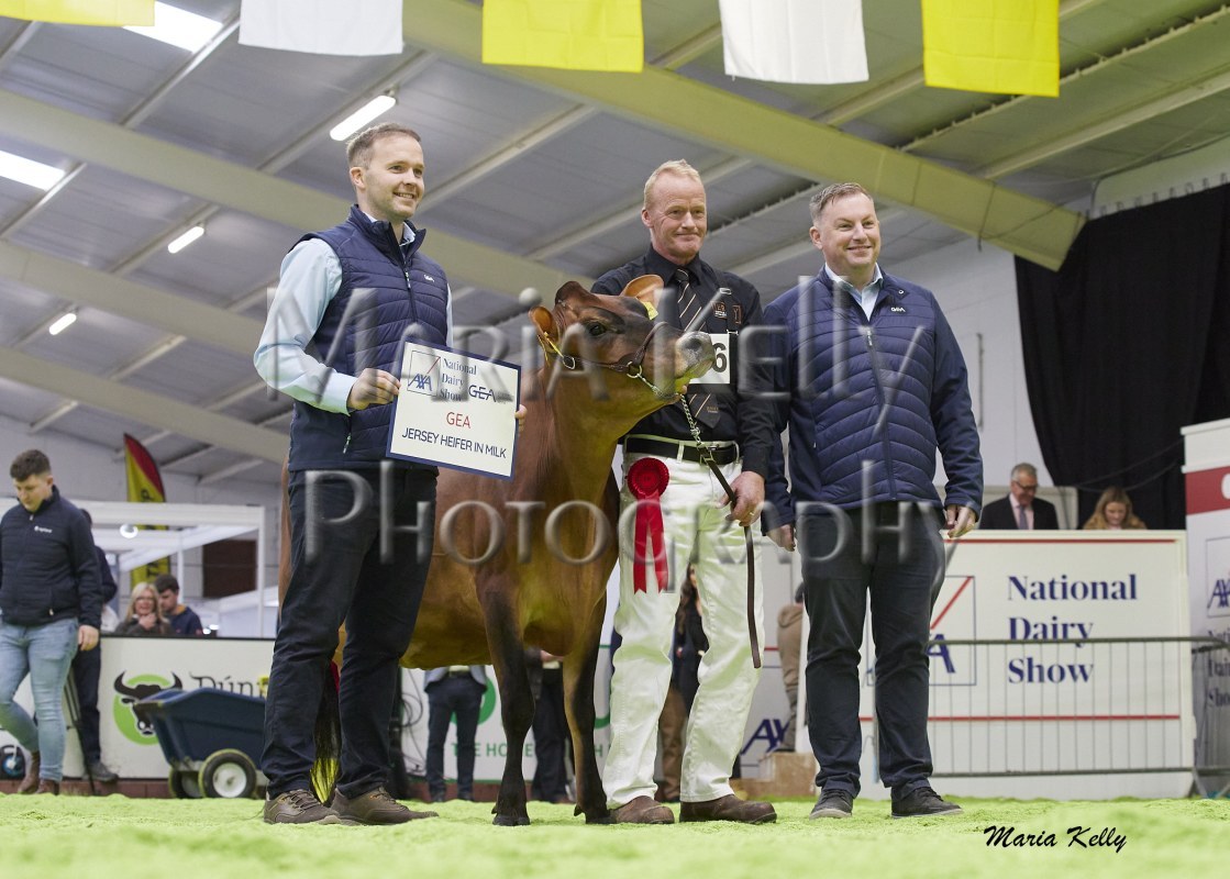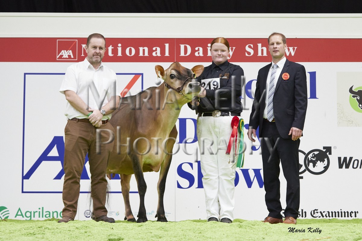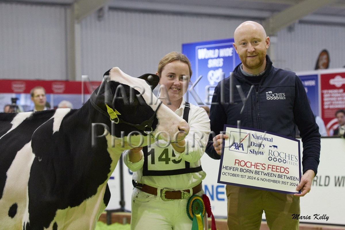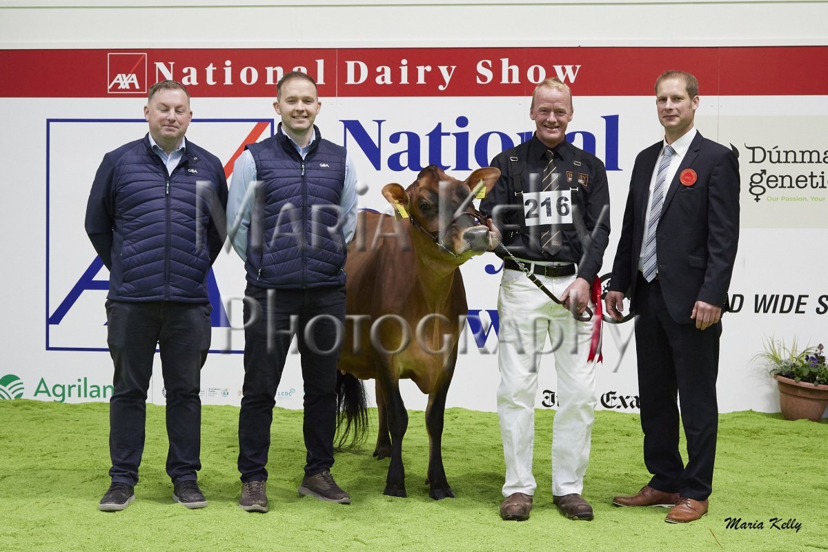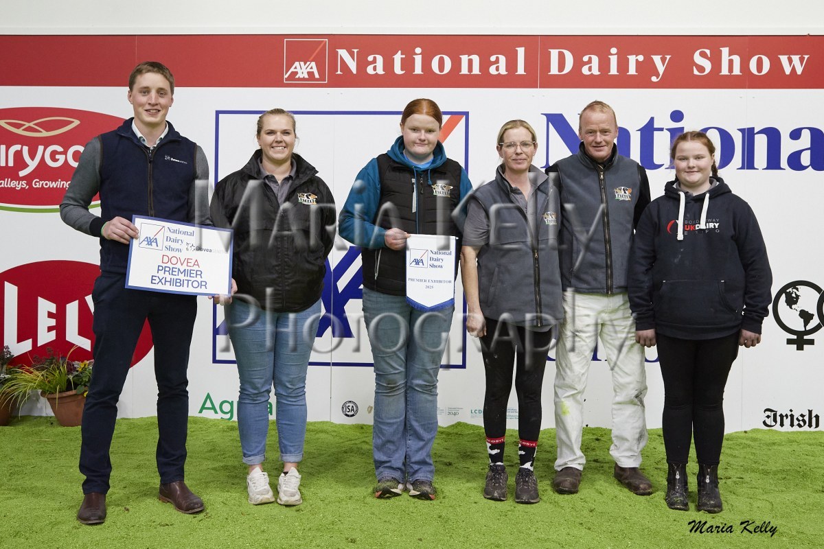 11/10/25 AXA National Dairy Show 2025, Irish Examiner Supreme Champion Hallow Octain Twizzle exhibited by Hallow Holsteins, Gorey, Co. Wexford, Philip & Linda Jones. Photo: Maria Kelly.