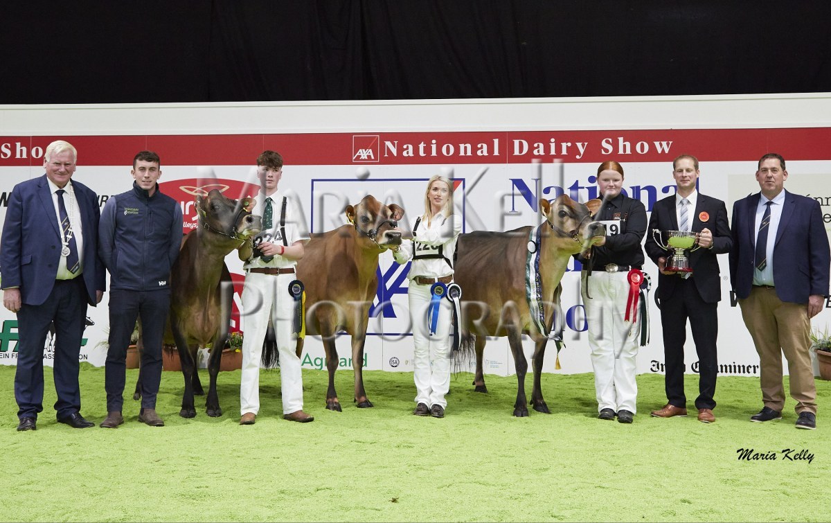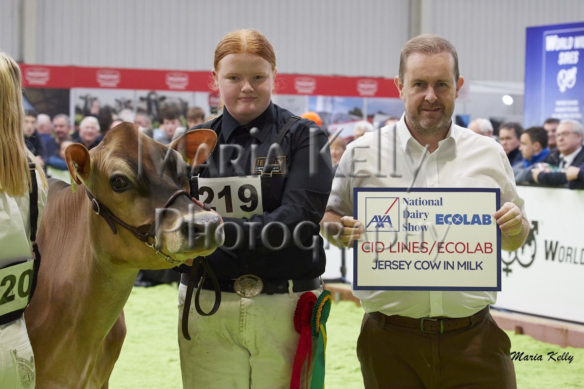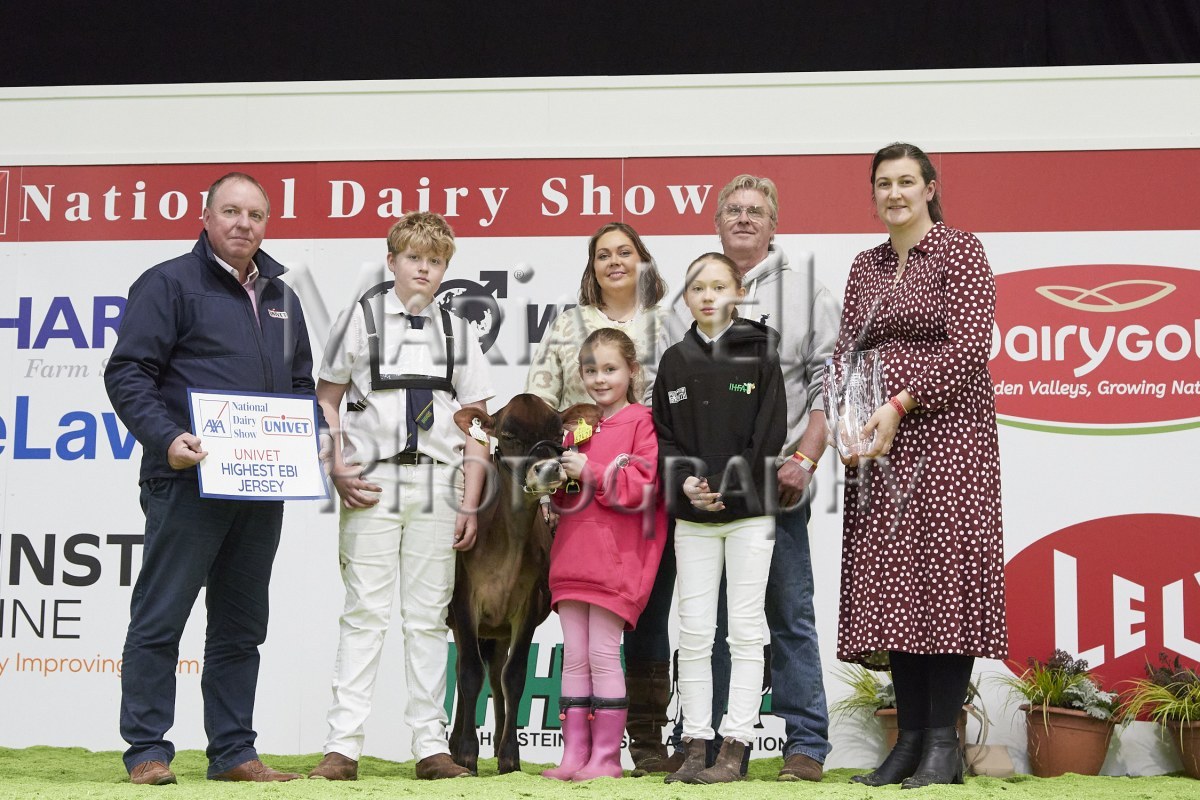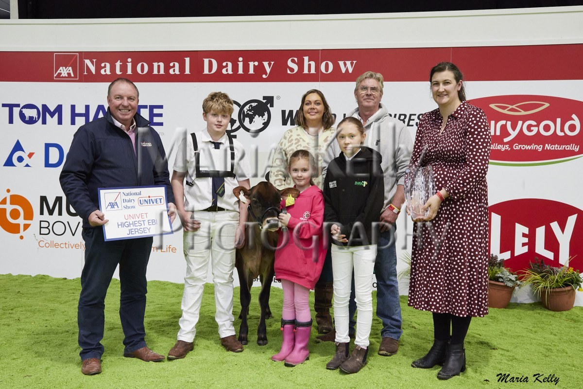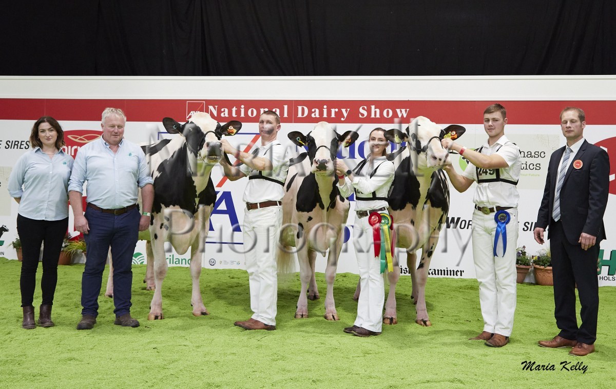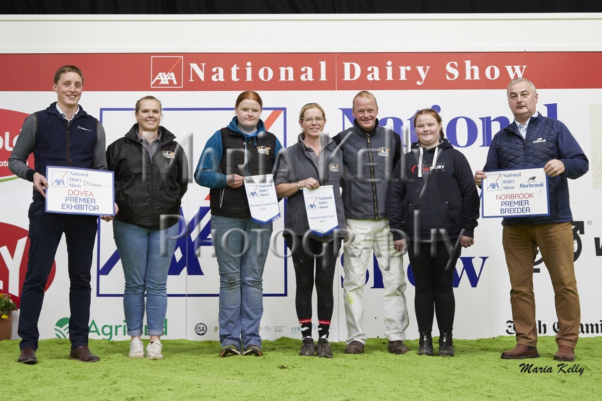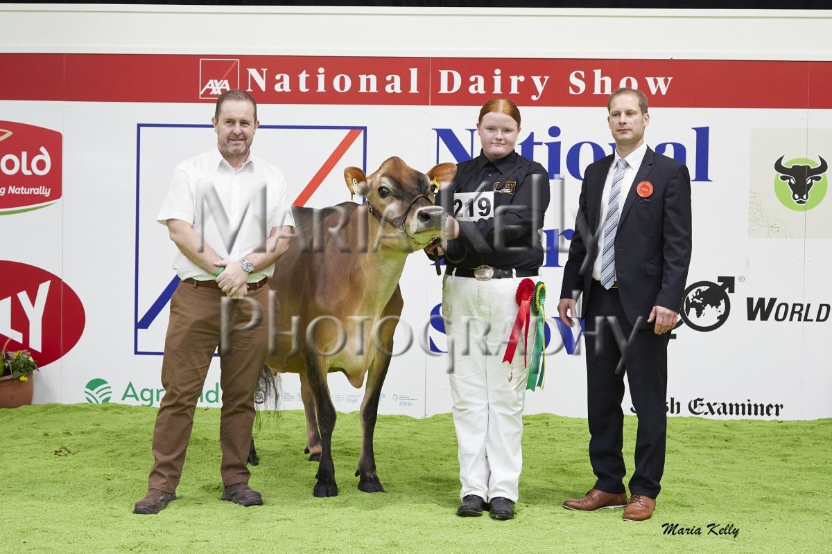 11/10/25 AXA National Dairy Show 2025, Irish Examiner Supreme Champion Hallow Octain Twizzle exhibited by Hallow Holsteins, Gorey, Co. Wexford, Philip & Linda Jones. Photo: Maria Kelly.